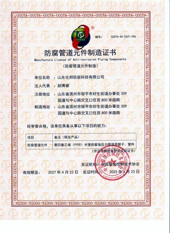 压力管道元件型式试验证书